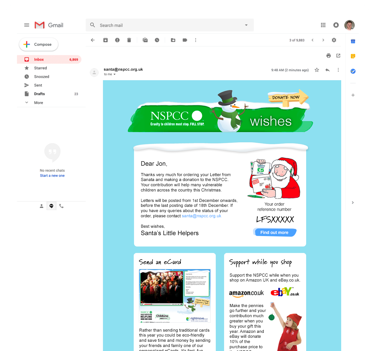 I designed a series of email templates to help keep users informed of the status of their Letters from Santa and highlight other features in support of the campaign. The aim was to present a clear message with a visually appealing, responsive layout and consistent branding.