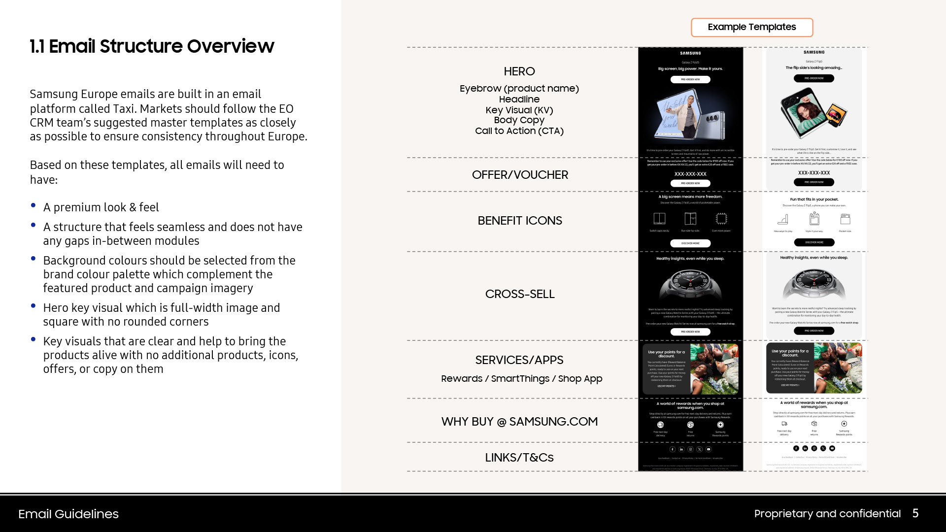 Alongside day-to-day campaign work, these guidelines were paired with Figma templates to improve accessibility, visual consistency and execution quality across Samsung Europe’s CRM output.